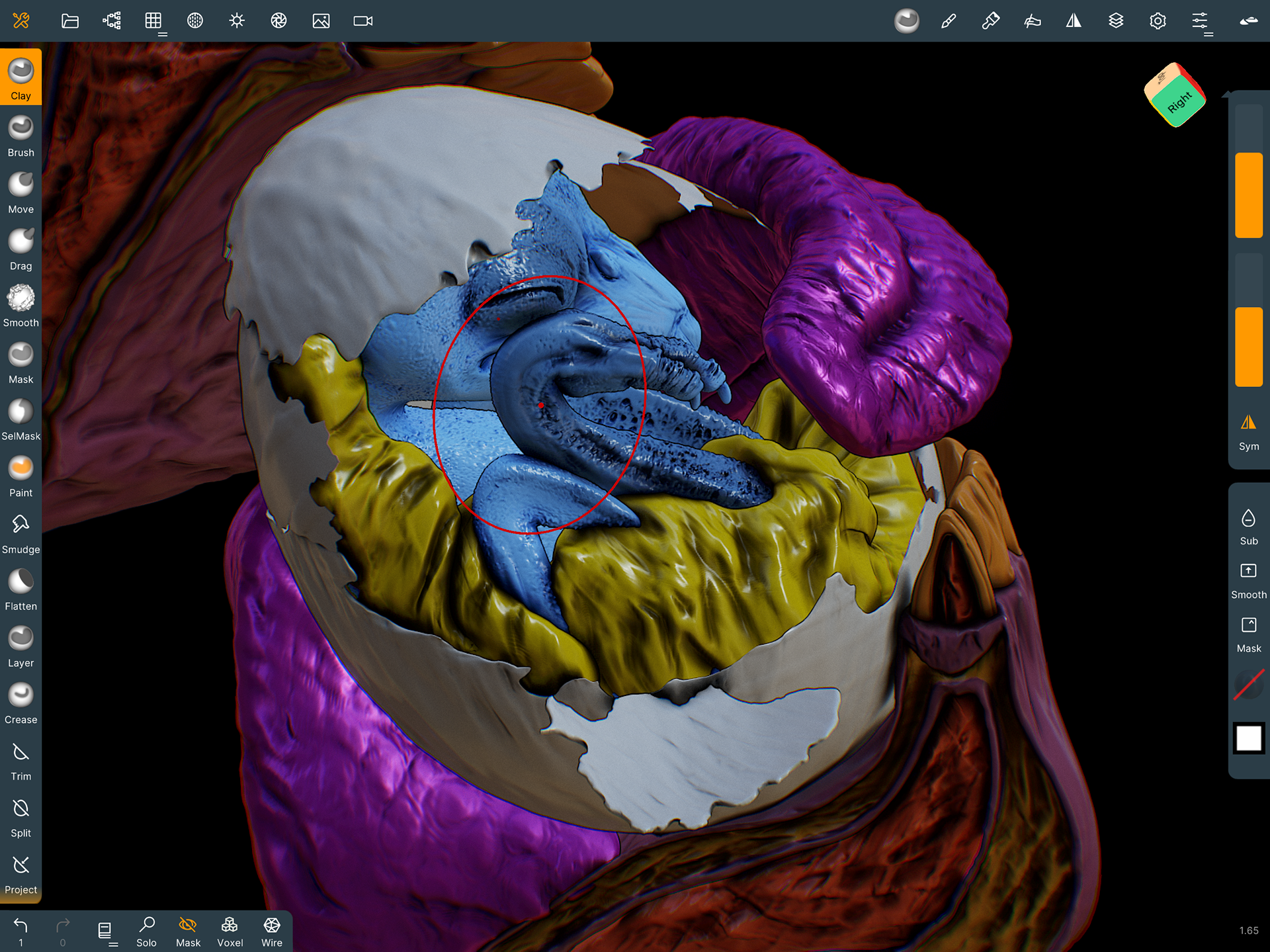 On this one, I can't explain with a straight face as to why you are looking at a fist pumping Hardstyle chicken fetus yet there it is. Starting out the process in Maya for rough shapes and blocking it was then wheeled over to my iPad using for sculpting with "Nomad" in the comfort of my couch. After having sculpted the models and taken it in for lookdev in Blender, I felt this guy really wanted to throw some shapes.
